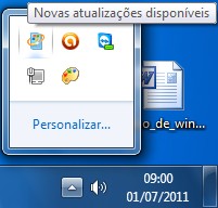 Ao usar o computador é comum do lado direito inferior (área de notificação), aparecer algumas mensagens sobre o estado de alguns programas e do sistema, uma delas pode ser a da Atualizações automáticas, informando que nova atualizações estão disponíveis, como na imagem abaixo: