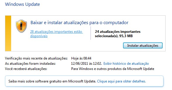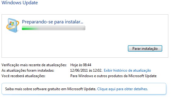 Como podemos ver o processo de atualização é bem simples, porém tome cuidado ao selecionar as correções que deseja que sejam instaladas, principalmente se o seu computador possuir software pirata, muitas vezes a microsoft libera atualizações que visam autenticar um software e caso ele seja pirata (como a maioria) ele irá emitir o aviso de pirataria, ou simplesmente parar de funcionar.