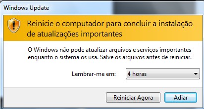 Ao terminar o processo, será notificado que as atualizações foram instaladas com êxito e que é necessário reiniciar, salve os seus arquivos, feche os programas e reinicie o computador, caso não faça isso, de tempos em tempos irá aparecer a imagem abaixo:
