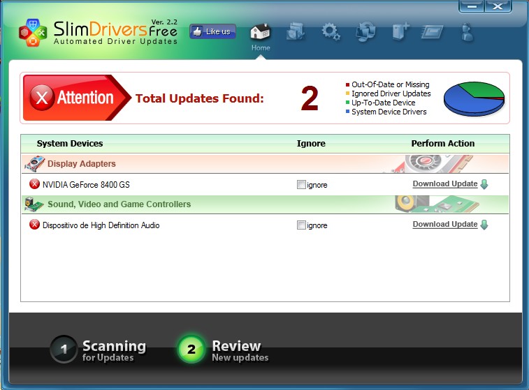 3. Ao terminar a busca por drivers, serão listados os drivers que podem instalados ou atualizados, basta clicar em download update para instalar/atualizar o driver.