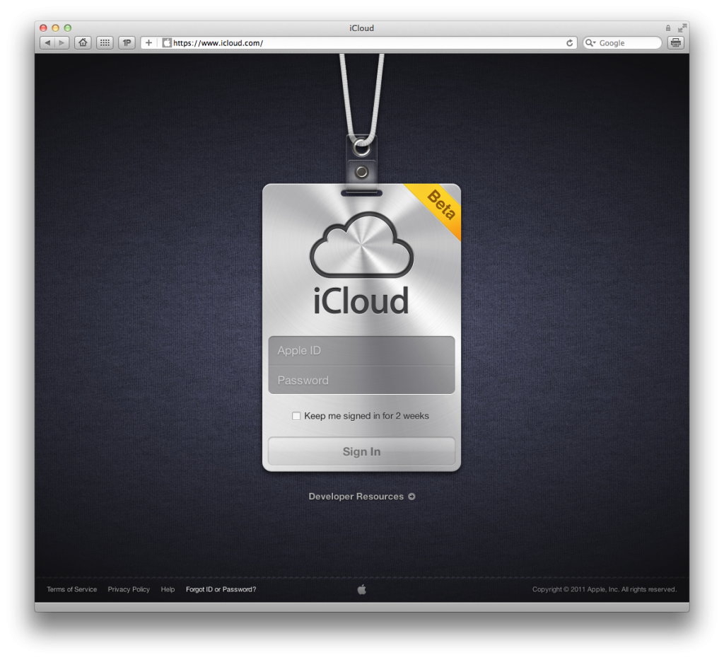 Nova página de login no iCloud.com
