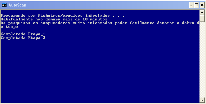 Normalmente o processo demorá em torno de 10 minutos, mas pode variar de um computador para o outro, ainda mais de acordo com a quantidade pragas existentes. O programa realiza várias etapas de análise e exclusão de ameças.