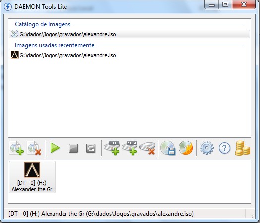 6. Para emular a imagem do jogo, clique nela, na unidade virtual criada (H:) e depois no 3º botão “Montar”.