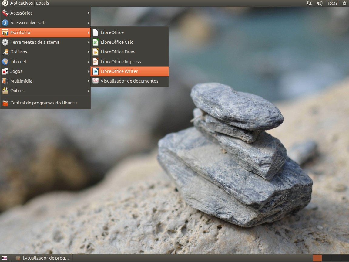 O Ubuntu já vem instalado com o LibreOffice (similar ao Office da Microsoft), nele temos programas que possuem as mesmas funções e compatibilidade com o do Windows, como o Writer (Word), Calc (Excel) e o Impress (PowerPoint). Eles ficam localizados no menu Aplicativos, na opção Escritório, lá é possível encontrar esses e outros programas.