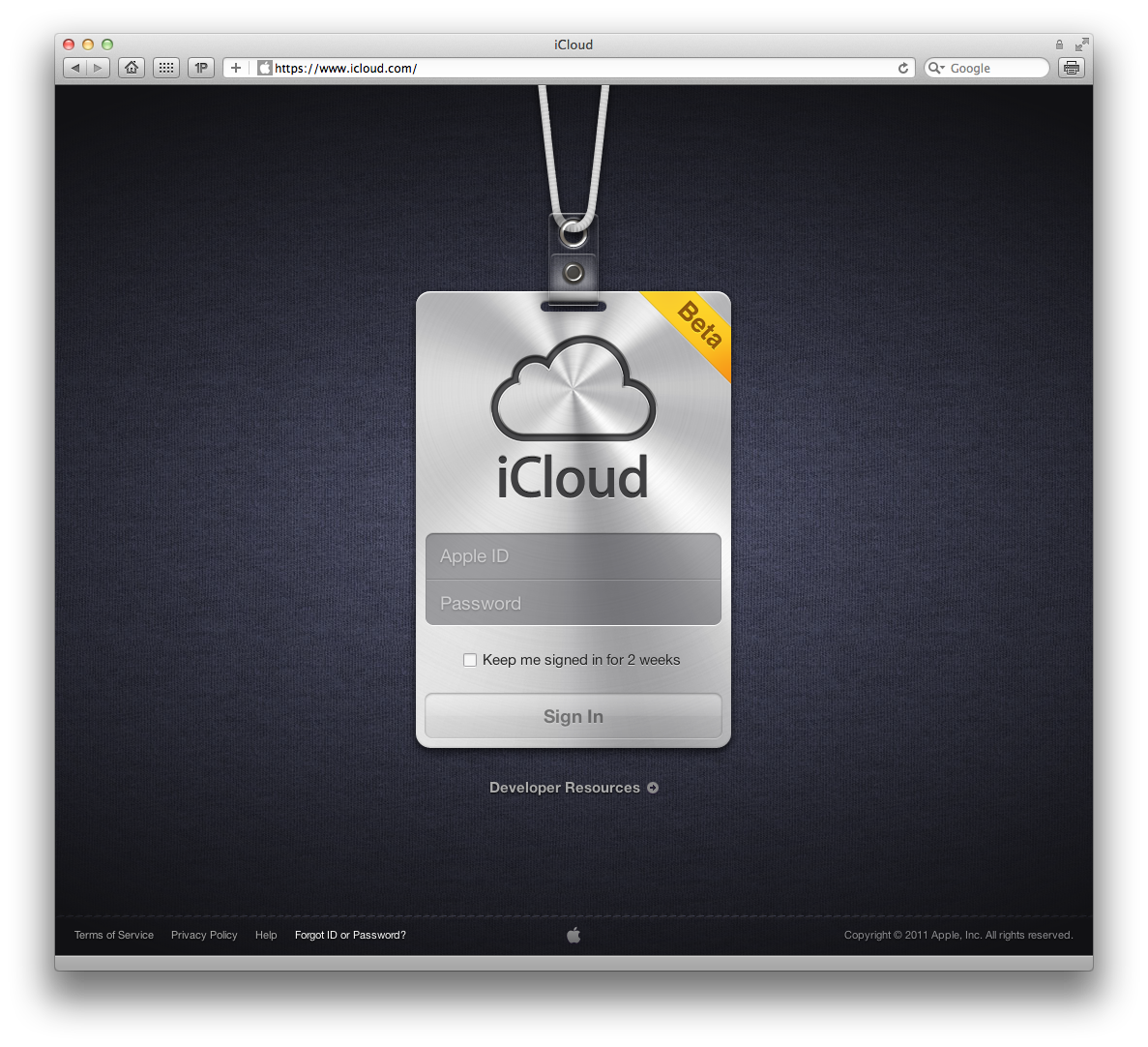 Nova página de login no iCloud.com