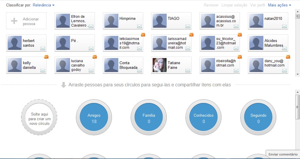 Algo bem interessante no Google Plus são os Círculos de Amizades, uma forma bem rápida e dinâmica de adicionar e organizar seus contatos, basta arrastar um contato sobre um círculo (amigos, família, trabalho, etc) e pronto, fica bem fácil de segmentar aquilo que você deseja compartilhar: