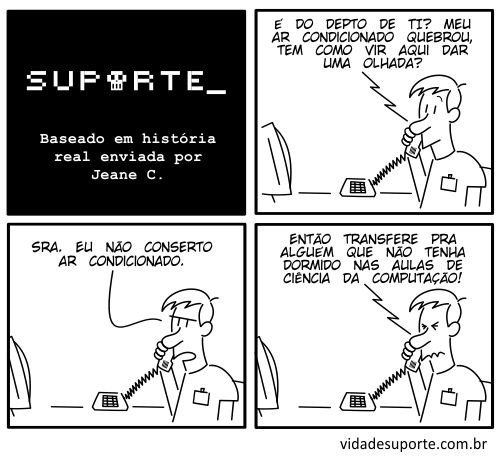 A fotografia que rouba a cenajul 21, 2011Viber chega para Androidjul 21, 2011 Show all Tirinha – Vida de Suporte (Conserto) Mais uma ótima tirinha do site Vida de Suporte Share Sérgio É formado como Técnico em Informática, possui graduação como Gestor em TI e pós graduação em Metodologia do Ensino na Educação Superior, trabalha atualmente com Suporte Técnico Educacional, mantém o blog como forma de organizar suas idéias. Related postsAntivírus: Como Escolher a Melhor Opção para seu PCRead more Deixe um comentário Cancelar respostaO seu endereço de e-mail não será publicado. Campos obrigatórios são marcados com *Comentário * Nome * E-mail * Site Salvar meus dados neste navegador para a próxima vez que eu comentar. Δ